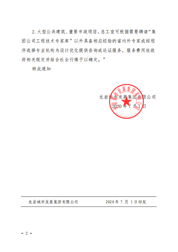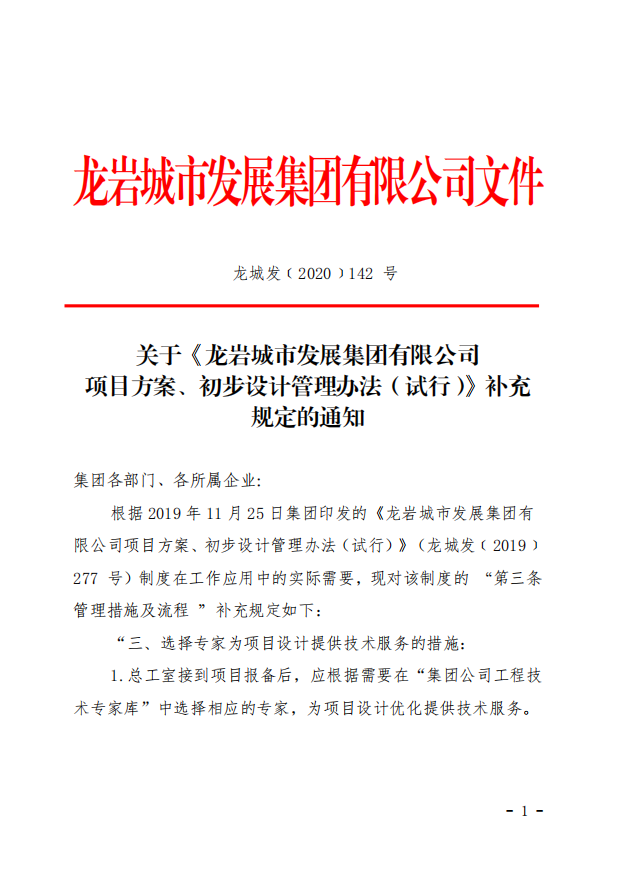 關于《龍巖城市發展集團 有限公司項目方案、初步設計管理辦法(試行)》補充規定的通知